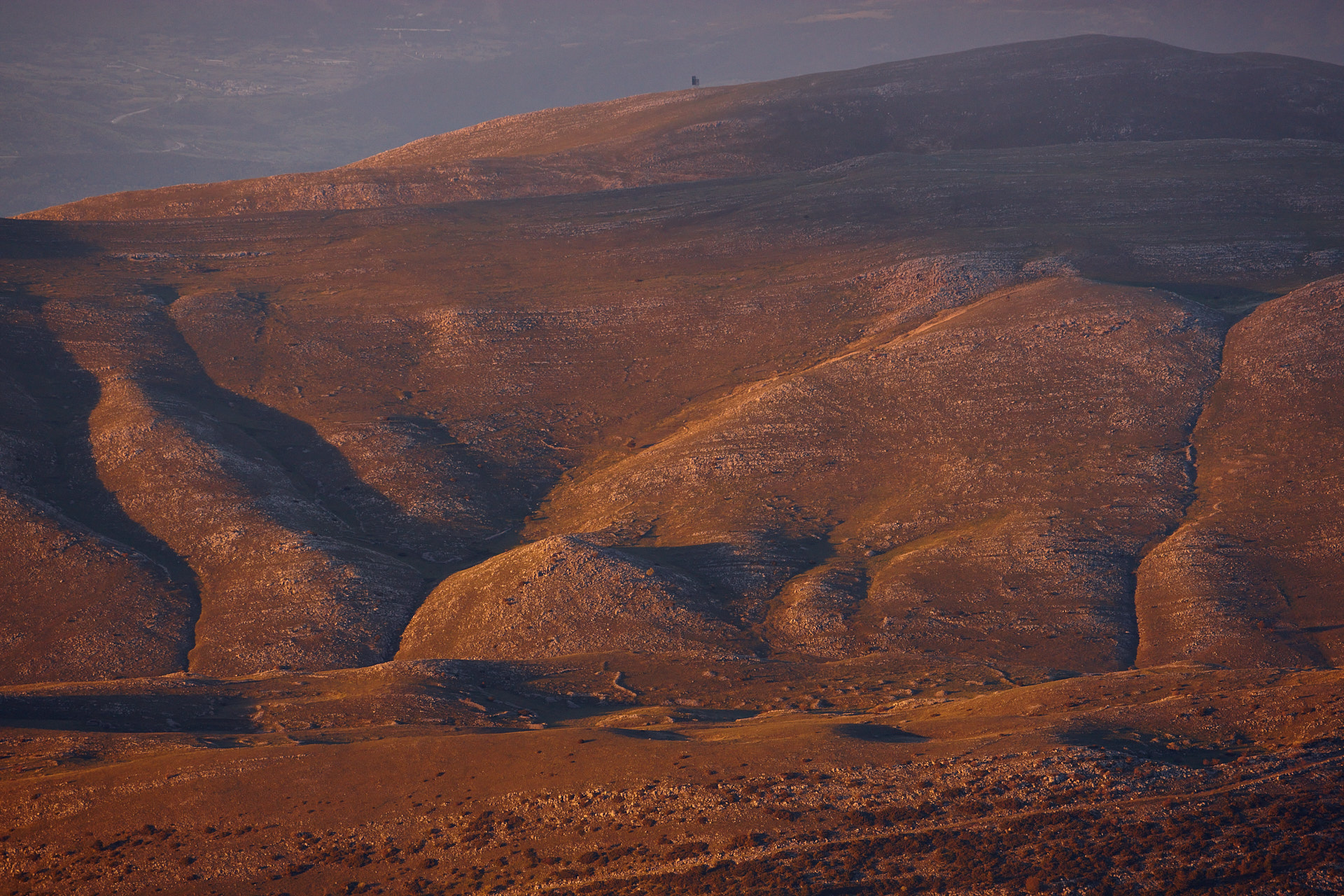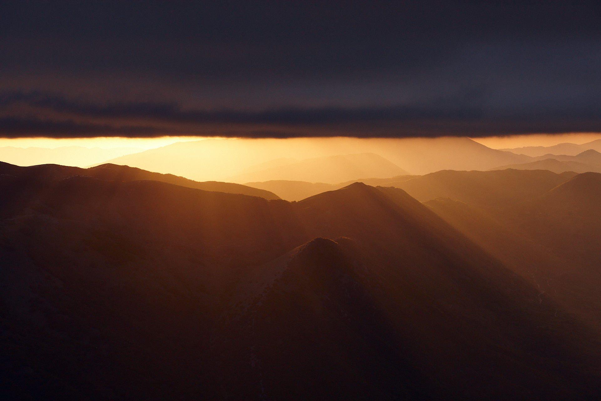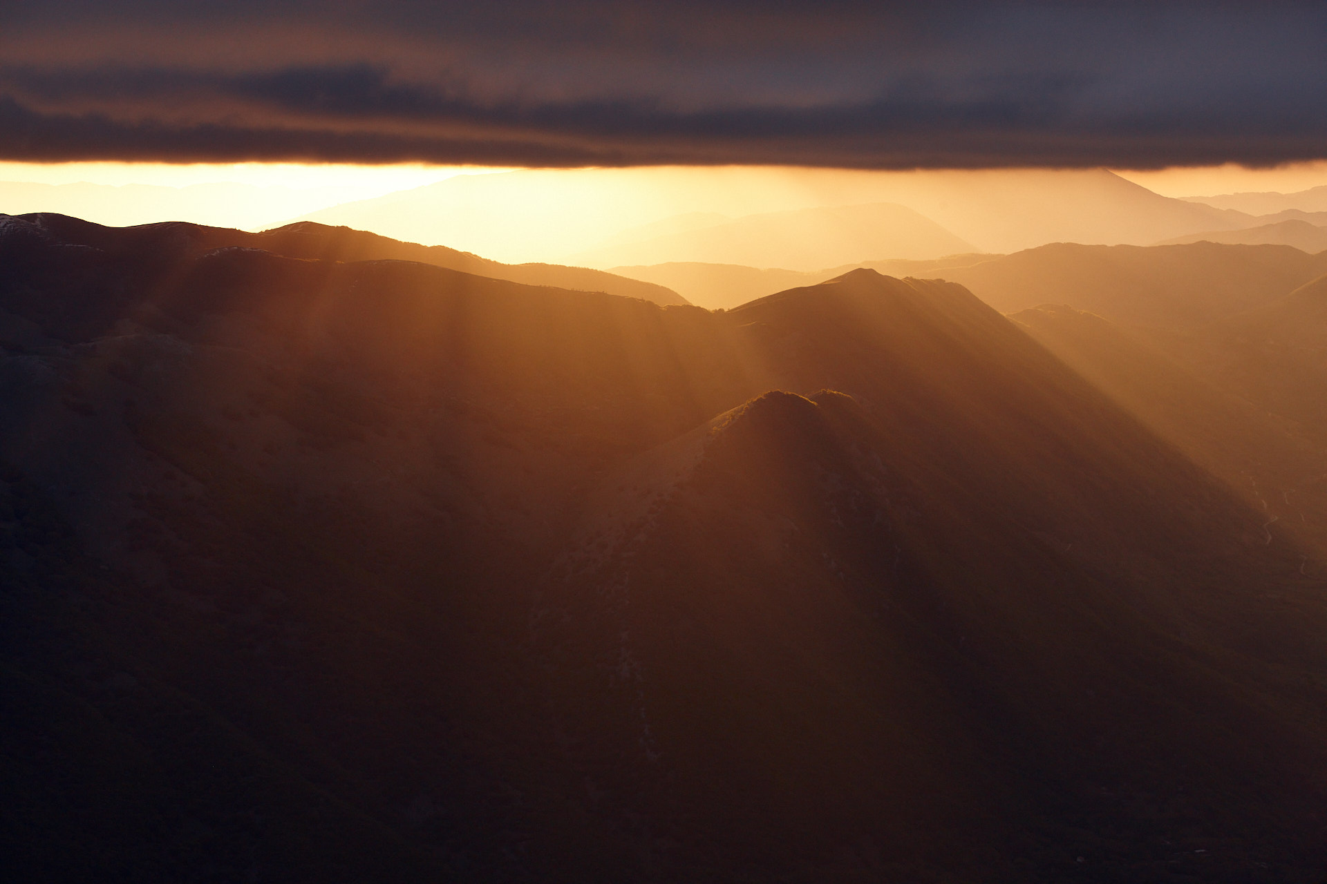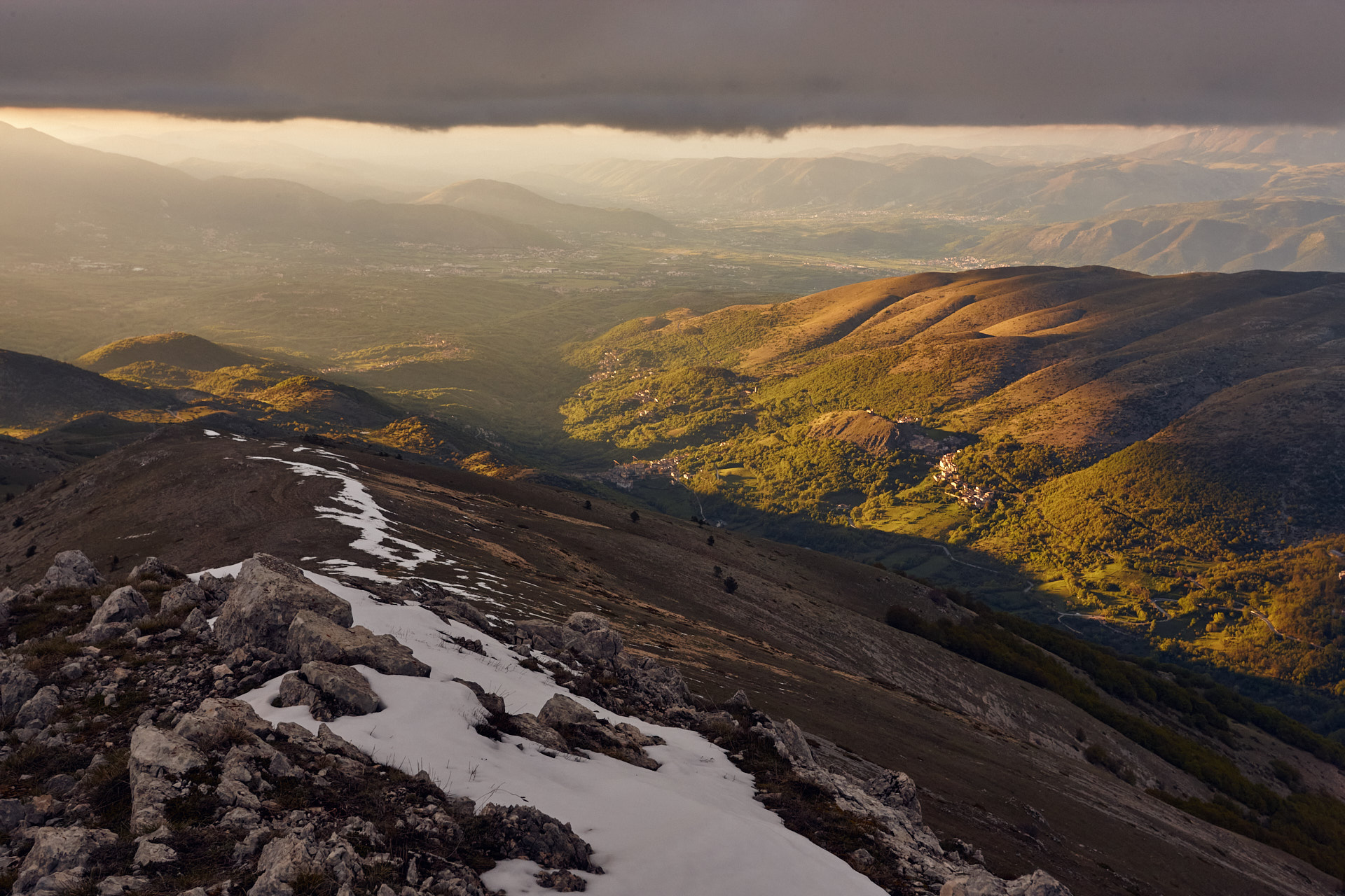 A wintry day in the middle of Spring along the lonely ridge of Monte Orsello, the late snow in patches on the ridges, the flight of eagles among the rocky spires, skies of ice and blades of light at sunset.